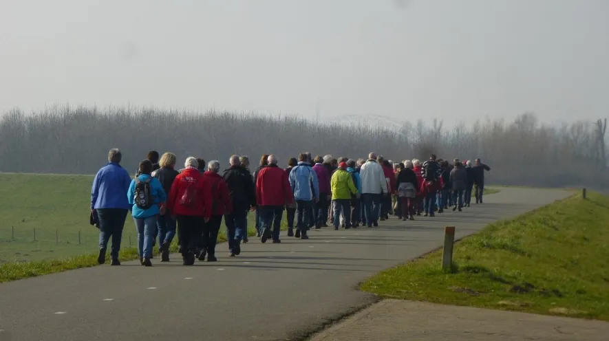 Toen de 95 wandelaars van deBOL langs kwamen werd er van beide kanten geapplaudisseerd, de jeugd moedigde de wandelaars aan alsof zij op weg waren naar de finish van de 4Daagse en de wandelaars klapten voor het mooie werk waarmee de jeugd, mede onder leiding van een van onze vaste wandelaars, bezig was.
