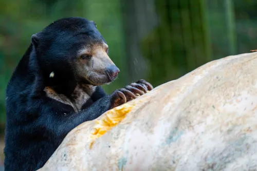 Donderdag 14 november om 08.30 uur stuitten de drie Maleise beren van Koninklijke Burgers’ Zoo op een enorm eetbaar gevaarte in hun buitenverblijf.