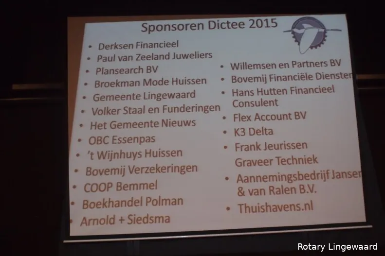 De deelnemers betaalden per gemaakte fout 0,30 euro. Een mooie opbrengst dus voor het te organiseren midwinterdiner door Rotary Lingewaard voor alleenstaande 55-plussers in de gemeente Lingewaard.