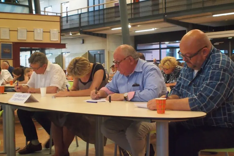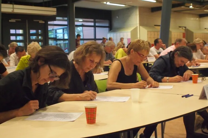 BEMMEL - Ondanks de eerste mooie zomeravond dit jaar deden op 5 juni toch 20 teams mee aan het Lingewaards Dictee in OBC de Essenpas. Burgemeester Marianne Schuurmans las het dictee met de titel 'Puzzelen' voor in een muisstille zaal.