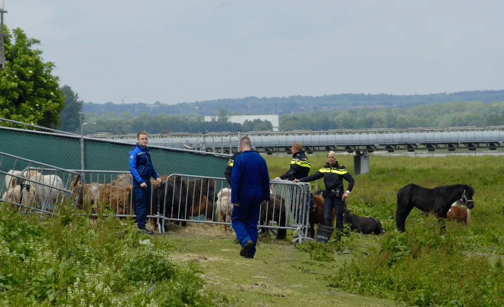 De dierenbescherming, dierenpolitie, handhaving en politie waren aanwezig.