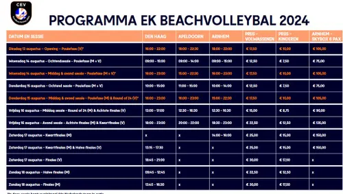 Voor het EK Beachvolleybal zijn nog kaarten verkrijgbaar. Meer informatie daarover
